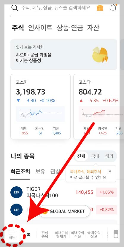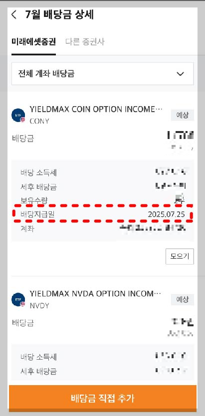 미래에셋증권 모바일앱에서 배당지급일 확인하는 방법