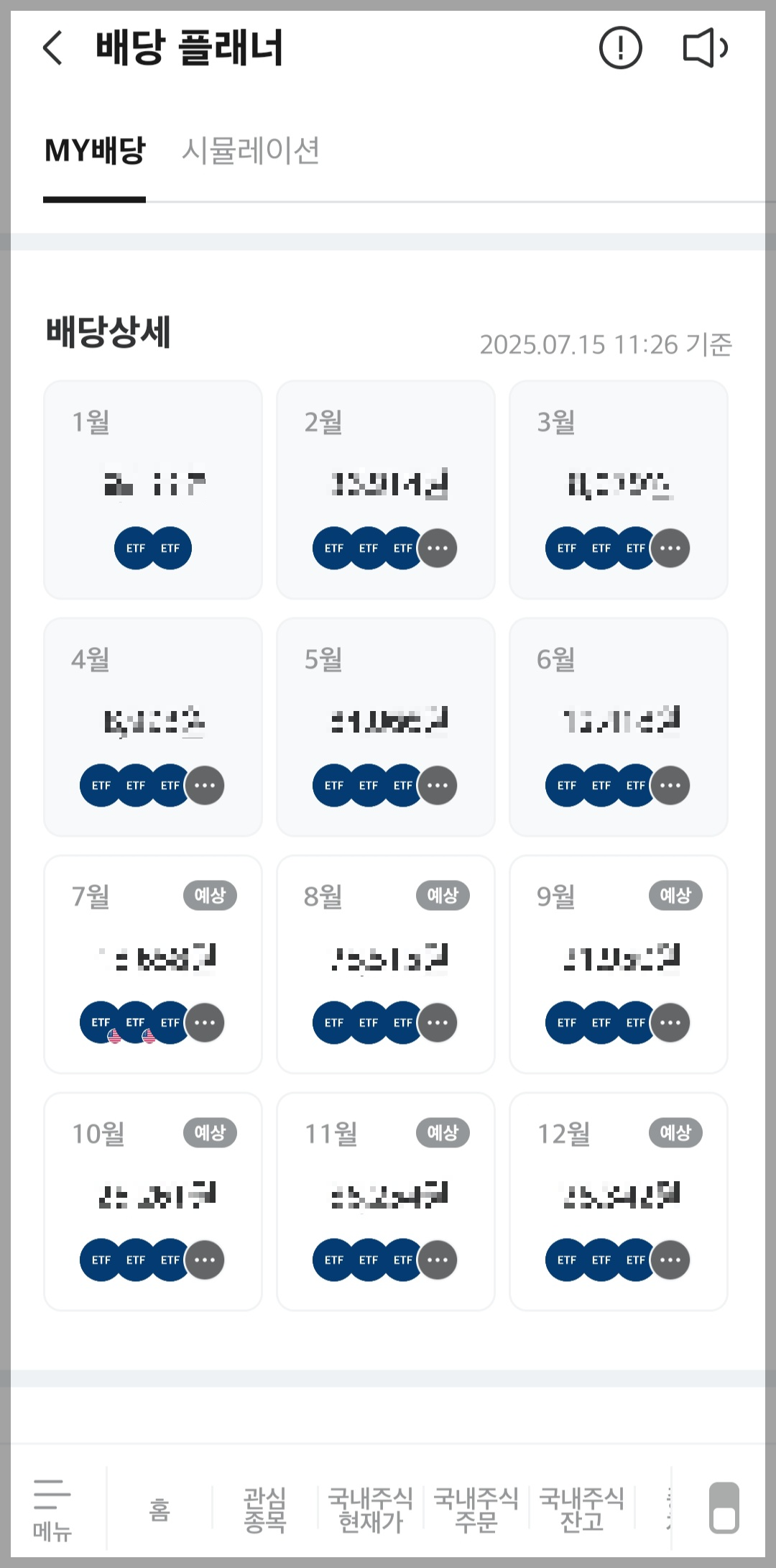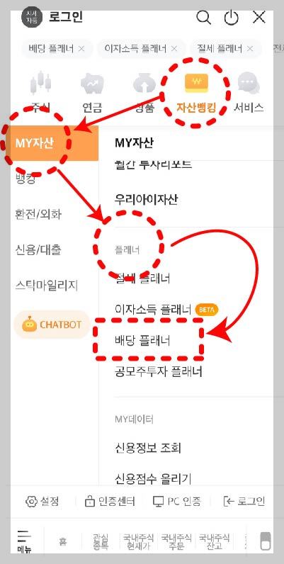 메인화면 > 메뉴 > 자산뱅킹 > MY자산 > 플래너 > 배당플래너 > 배당상세