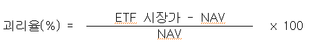 - 괴리율 = ETF 시장가와 이론가(NAV)의 차이