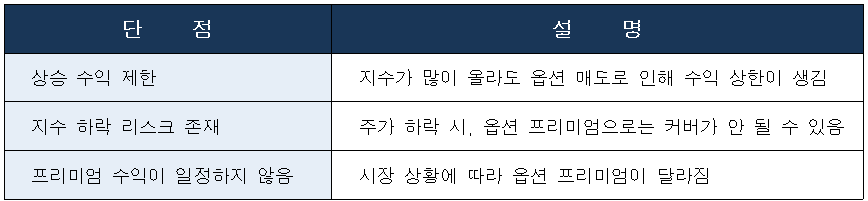 지수 상승 수익은 제한되지만, 지수 횡보 구간에선 강력한 수익 구조를 가질 수 있죠.